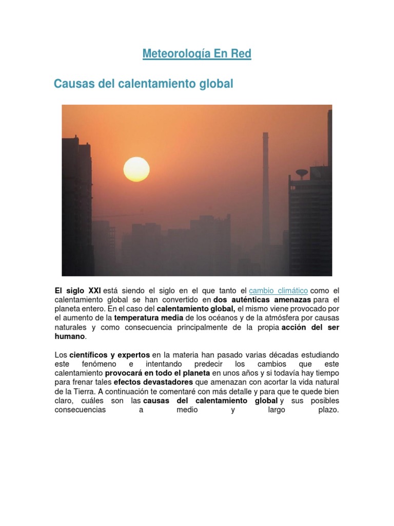 planeta a medio plazo. Aunque las causas del calentamiento global de tipo