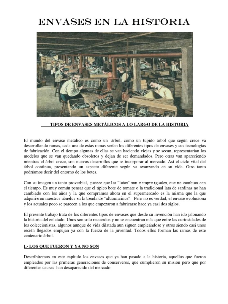 El presente trabajo trata de los diferentes tipos de envases que desde su invención han ido jalonando