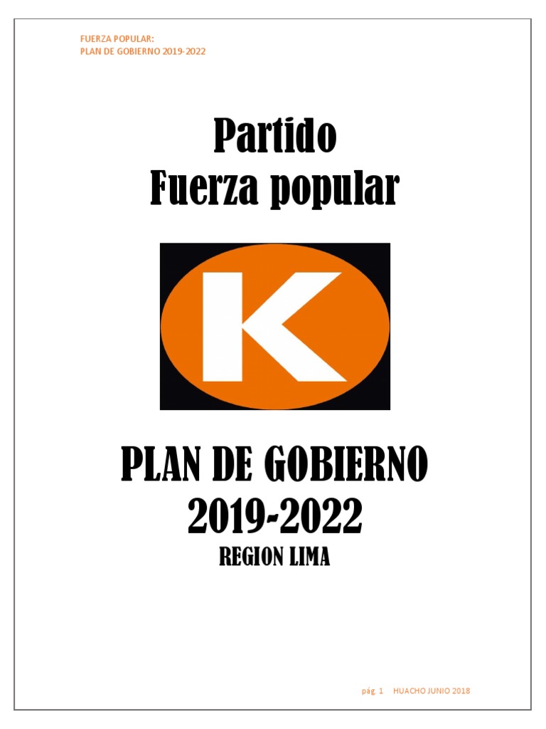 El Plan de Gobierno de Fuerza Popular para el periodo 2019-2022, es el