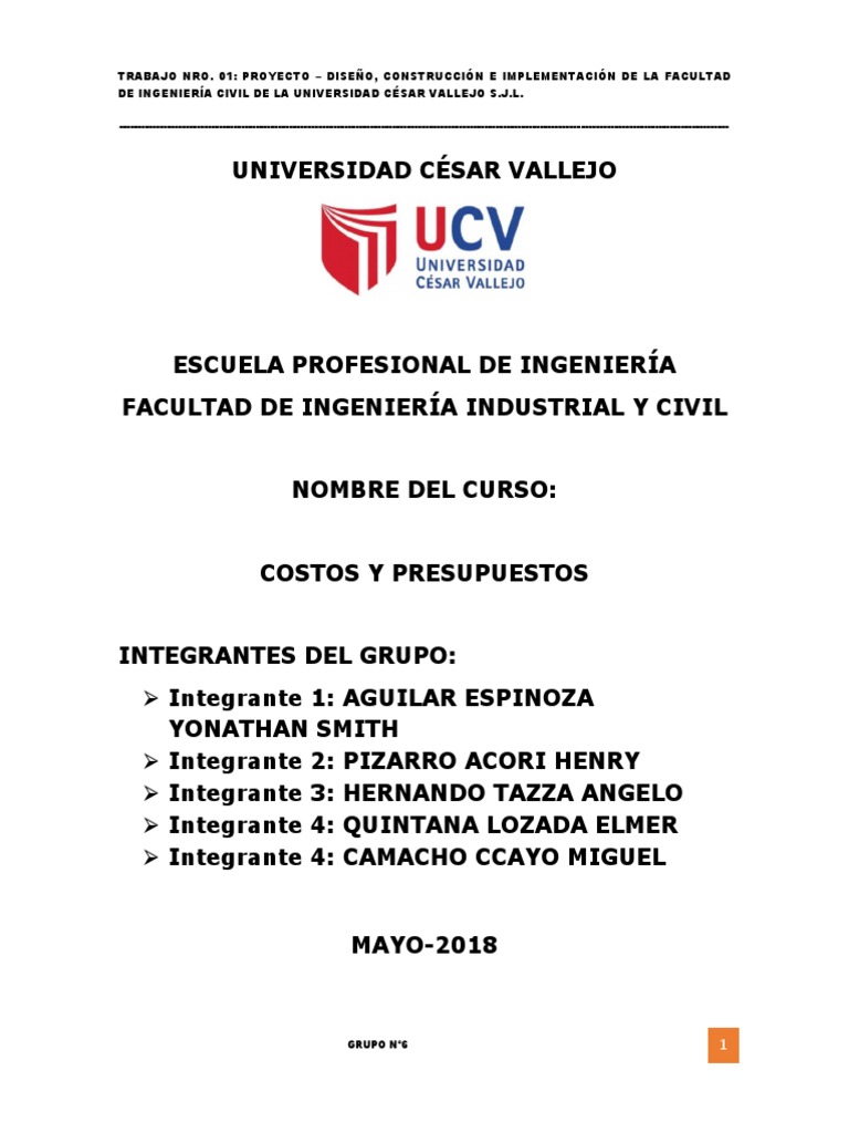 TRABAJO NRO. 01: PROYECTO – DISEÑO, CONSTRUCCIÓN E IMPLEMENTACIÓN DE LA FACULTAD