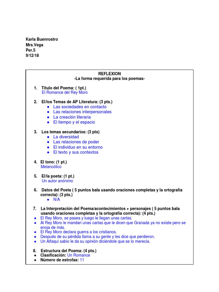 9. Expresión de los sentimientos del Poeta ( 2 puntos bala usando oraciones