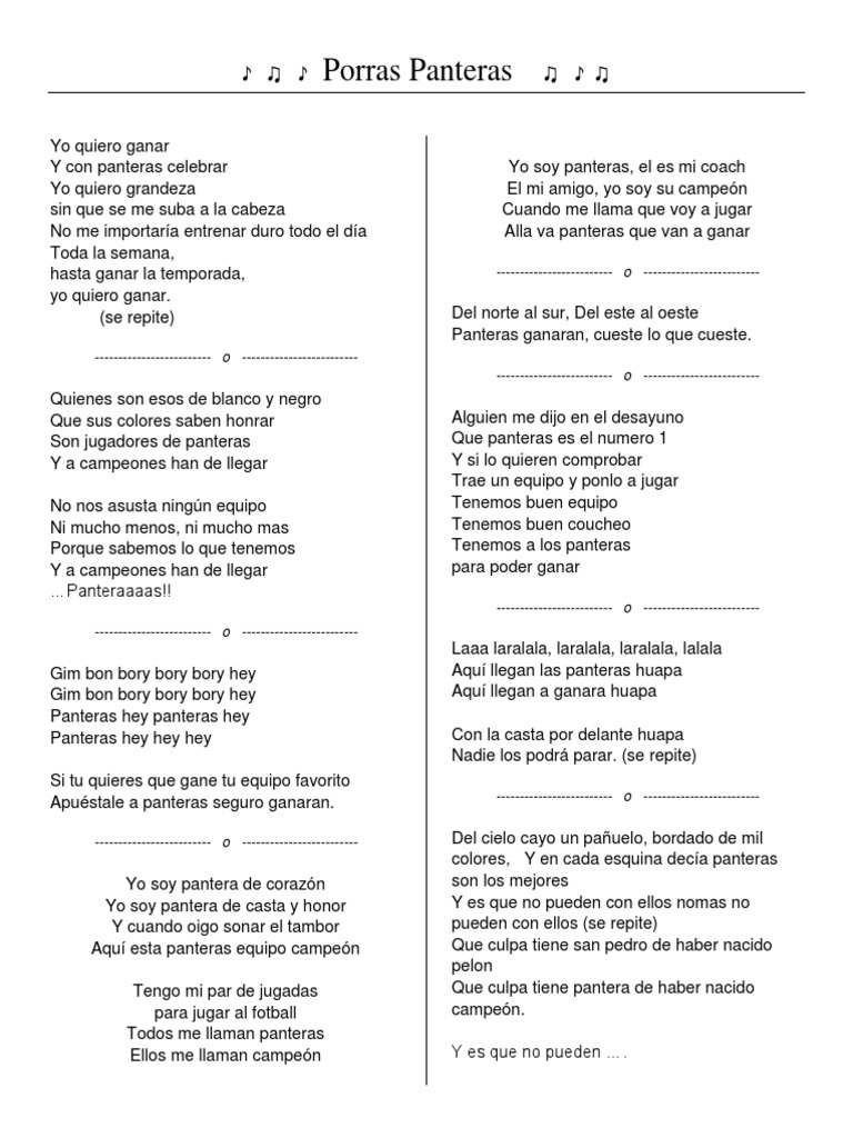 Oooh panteras, oooh aguanten Te apoyo y tu siempre respondes uoooo