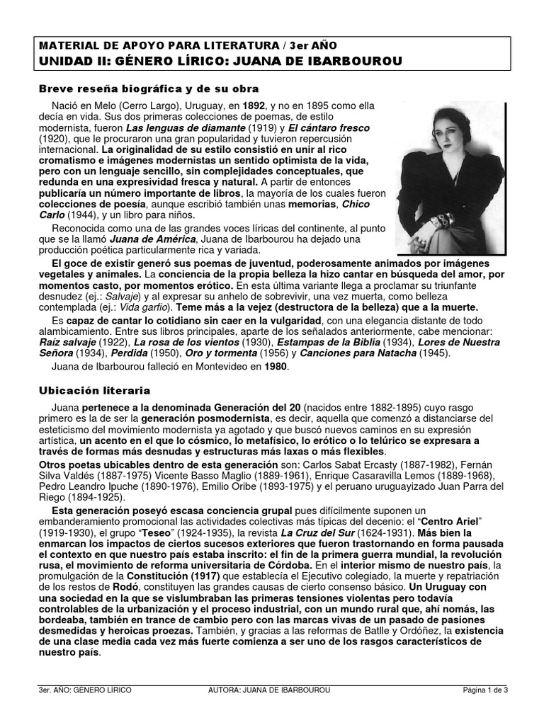3er. AÑO: GÉNERO LÍRICO AUTORA: JUANA DE IBARBOUROU Página 1 de 3