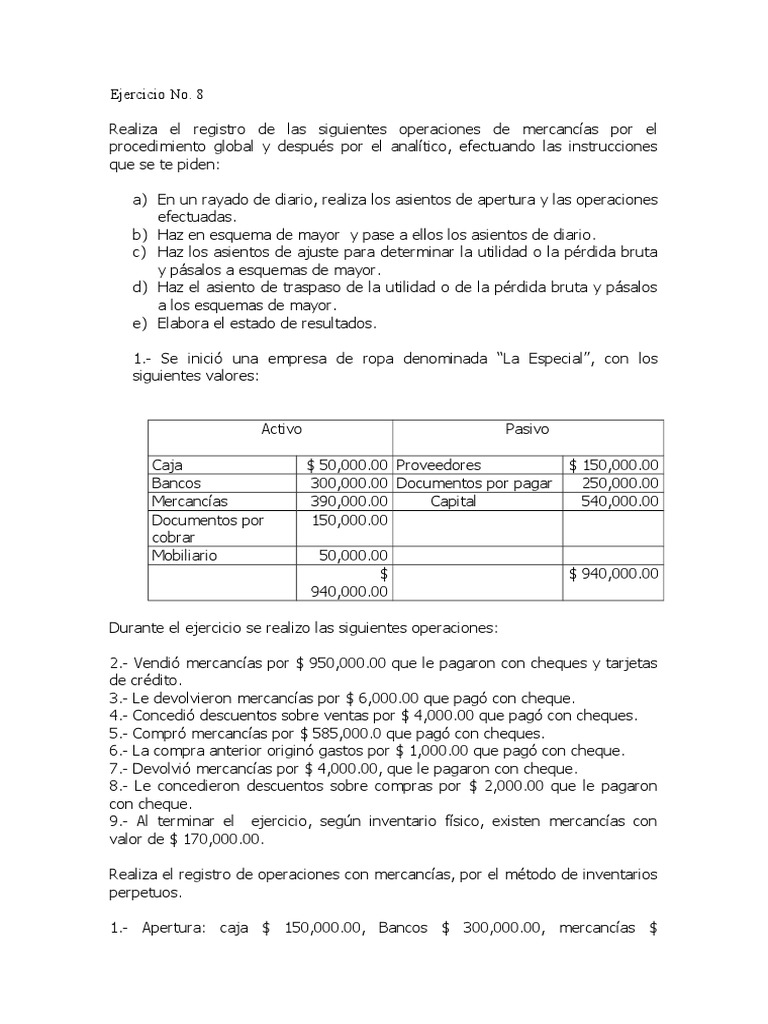 1.- Apertura: caja $ 150,000.00, Bancos $ 300,000.00, mercancías $