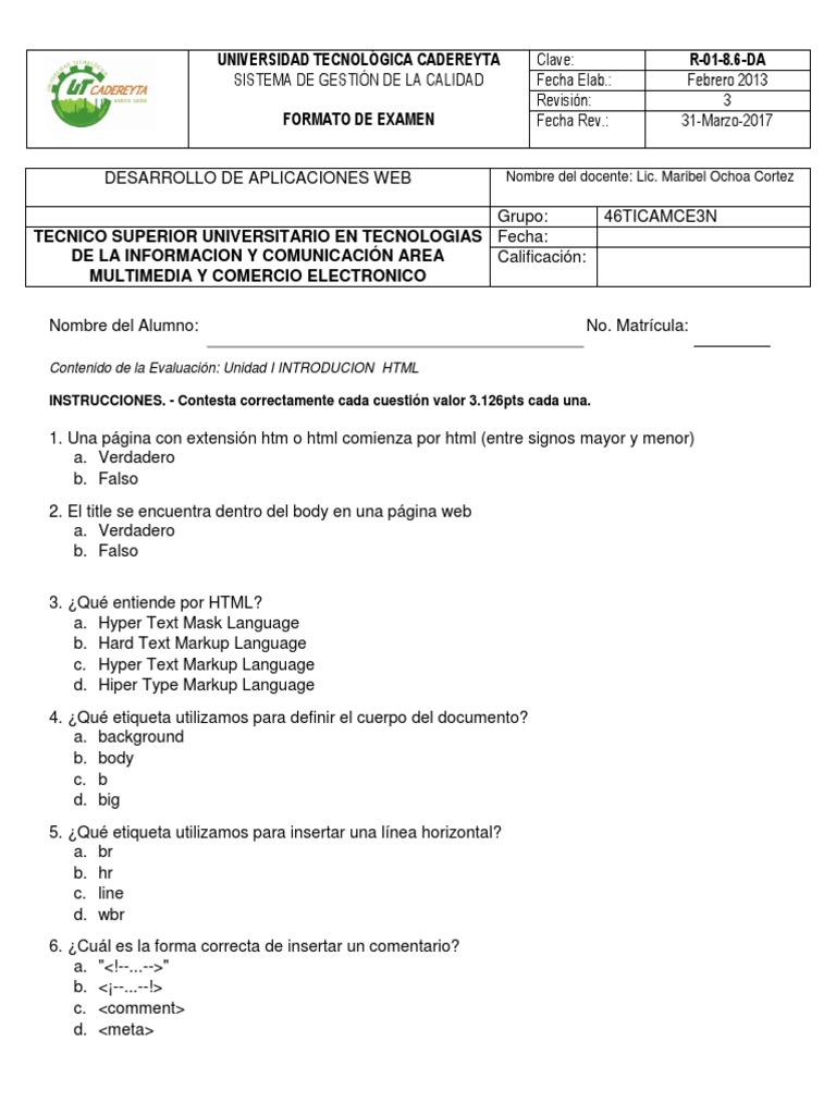 FORMATO DE EXAMEN Fecha Rev.: 31-Marzo-2017