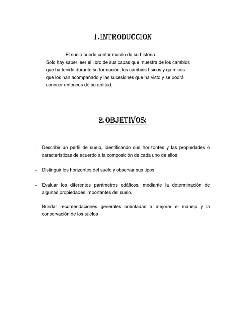 - Describir un perfil de suelo, identificando sus horizontes y las propiedades o
