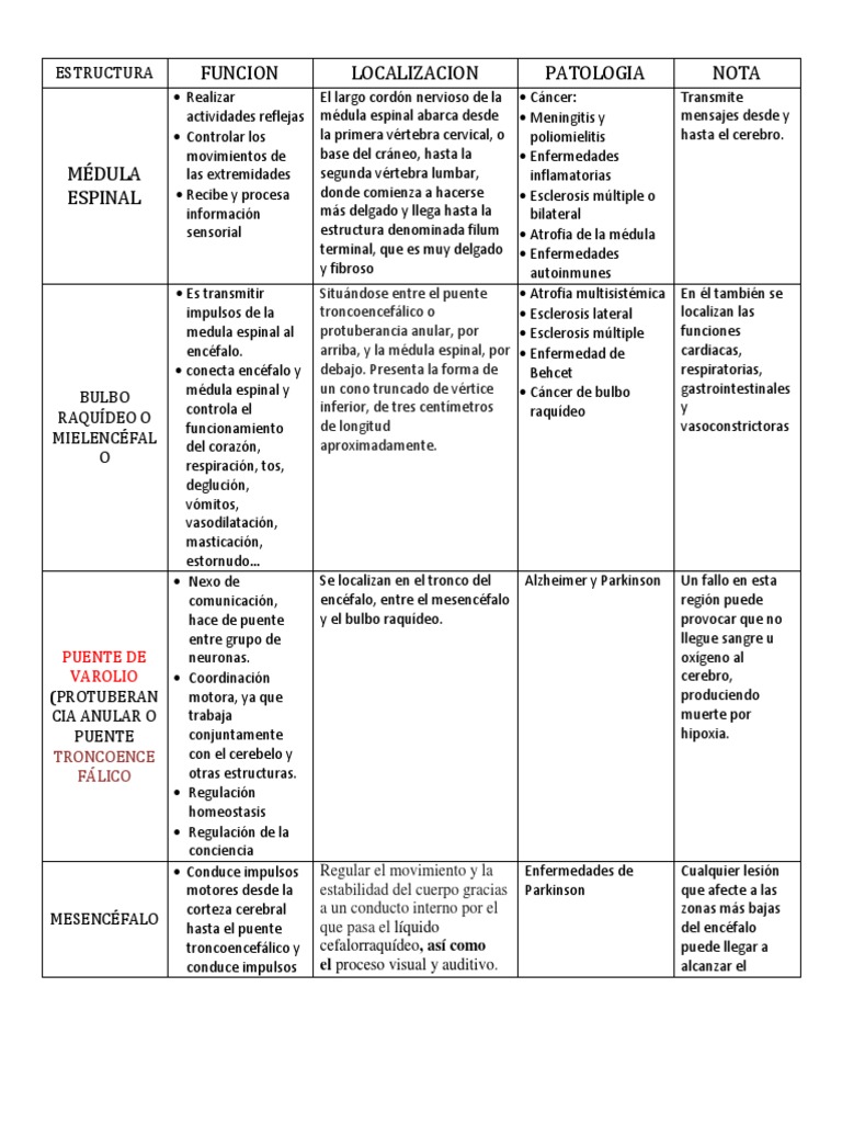 ESTRUCTURA FUNCION LOCALIZACION PATOLOGIA NOTA