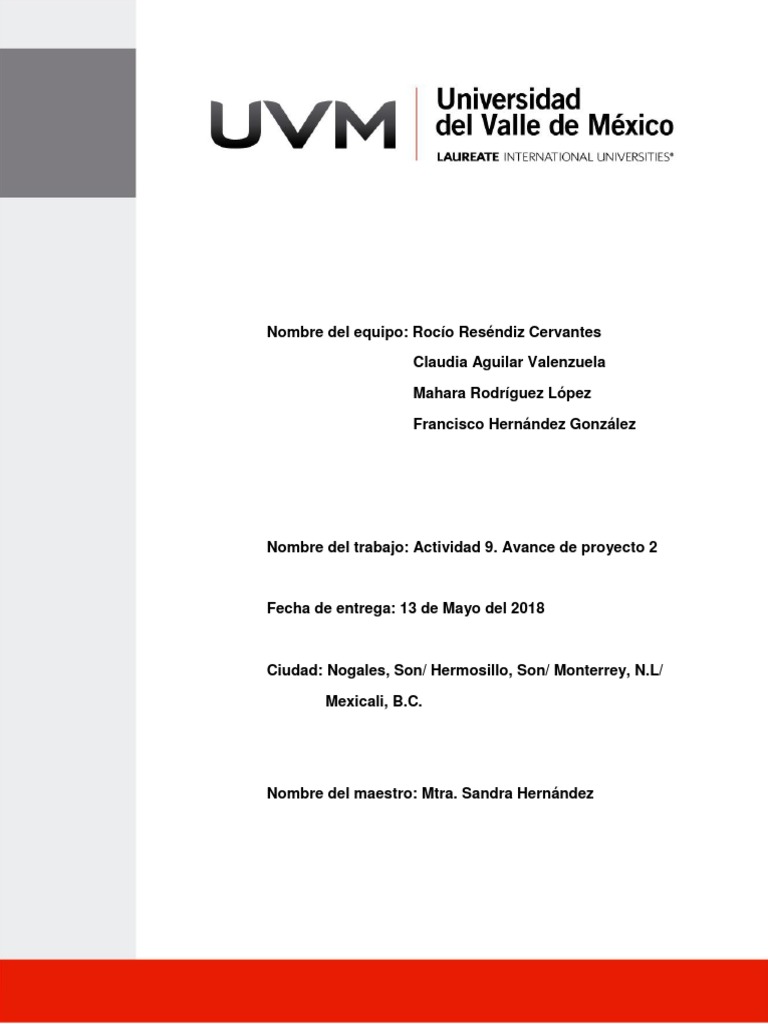 Nombre del trabajo: Actividad 9. Avance de proyecto 2