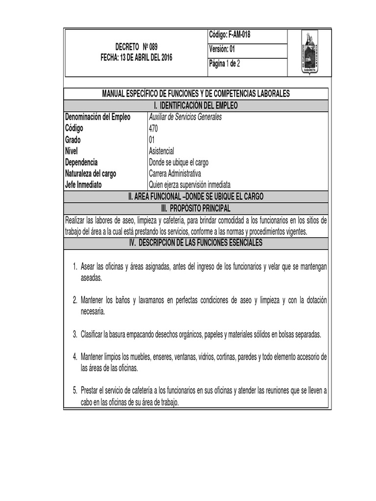 MANUAL ESPECÍFICO DE FUNCIONES Y DE COMPETENCIAS LABORALES