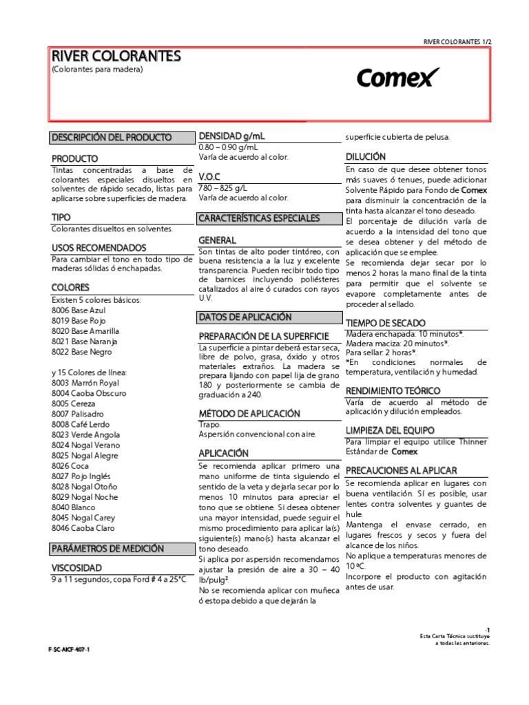 aplicarse sobre superficies de madera. Varía de acuerdo al color. para disminuir la concentración de la