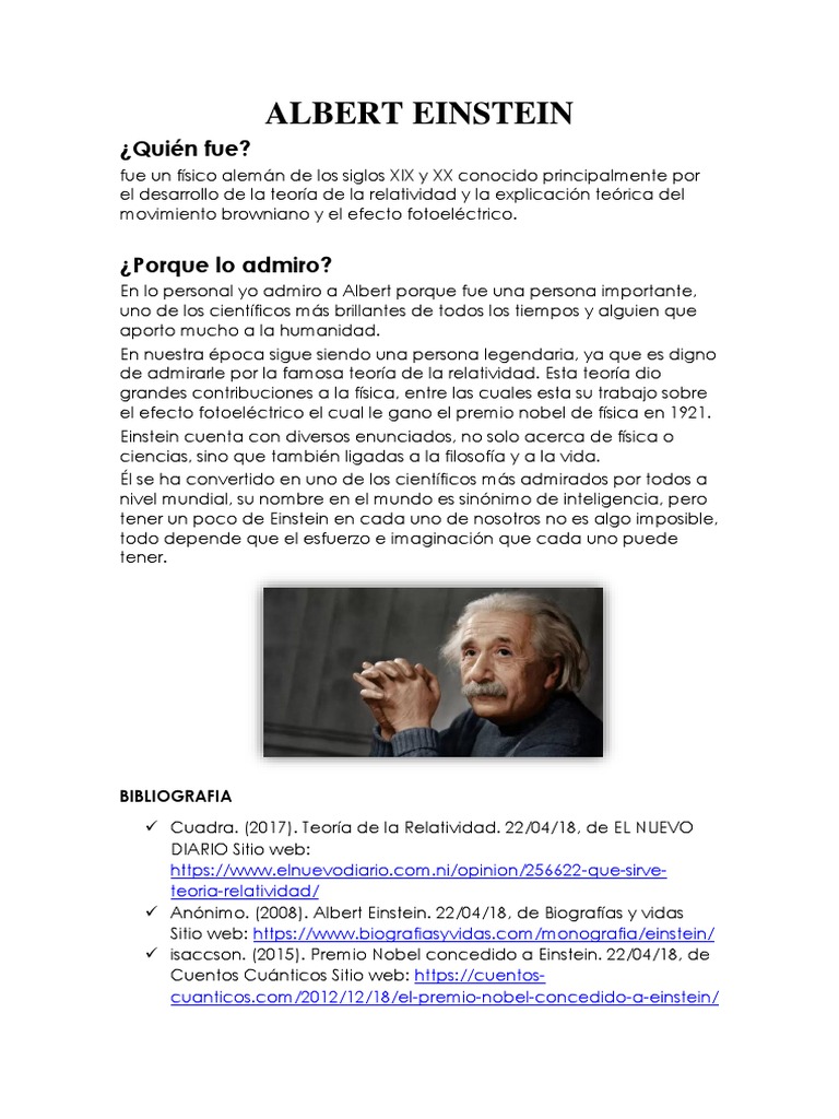 En lo personal yo admiro a Albert porque fue una persona importante,