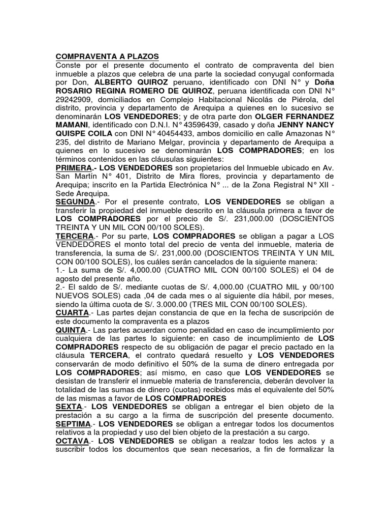 inmueble a plazos que celebra de una parte la sociedad conyugal conformada