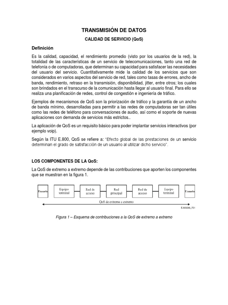 Según la ITU E.800, QoS se refiere a: “Efecto global de las prestaciones de un servicio