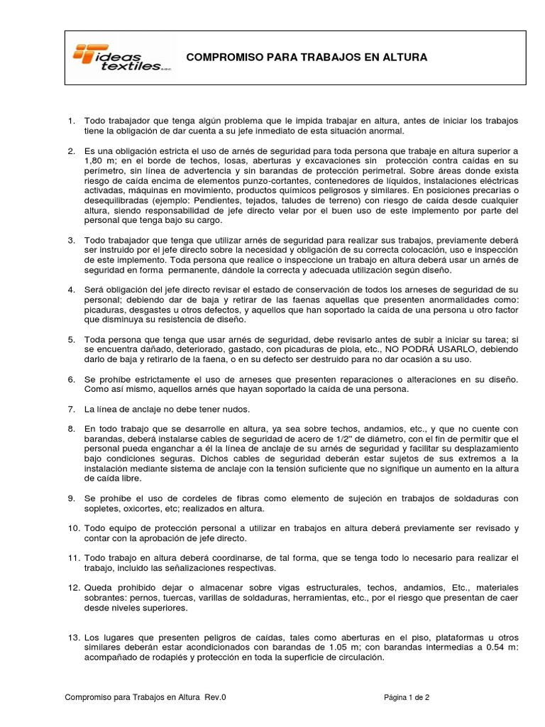 Compromiso para Trabajos en Altura Rev.0 Página 1 de 2