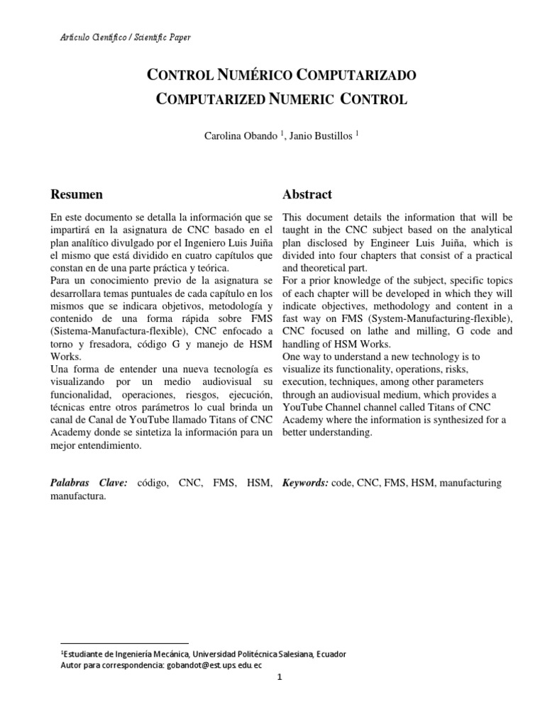 Palabras Clave: código, CNC, FMS, HSM, Keywords: code, CNC, FMS, HSM, manufacturing