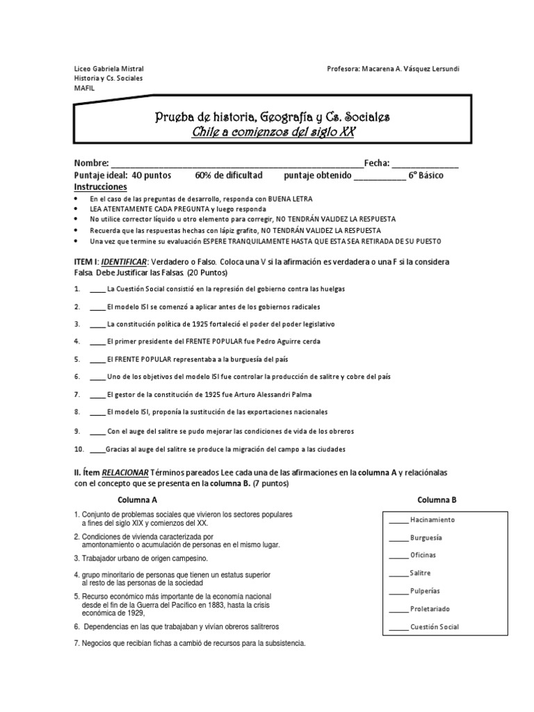 6. ____ Uno de los objetivos del modelo ISI fue controlar la producción de salitre y cobre del país