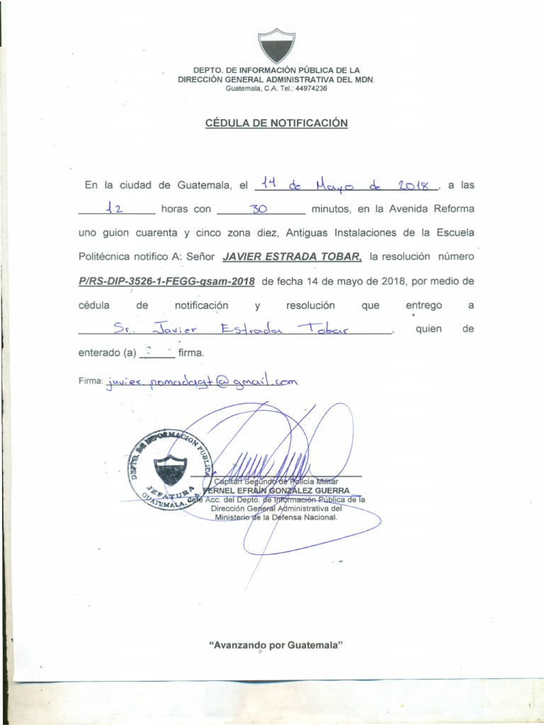 cédula de notificación y resolución que entrego a