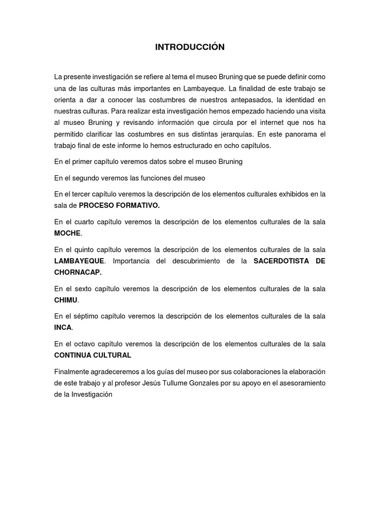 La presente investigación se refiere al tema el museo Bruning que se puede definir como