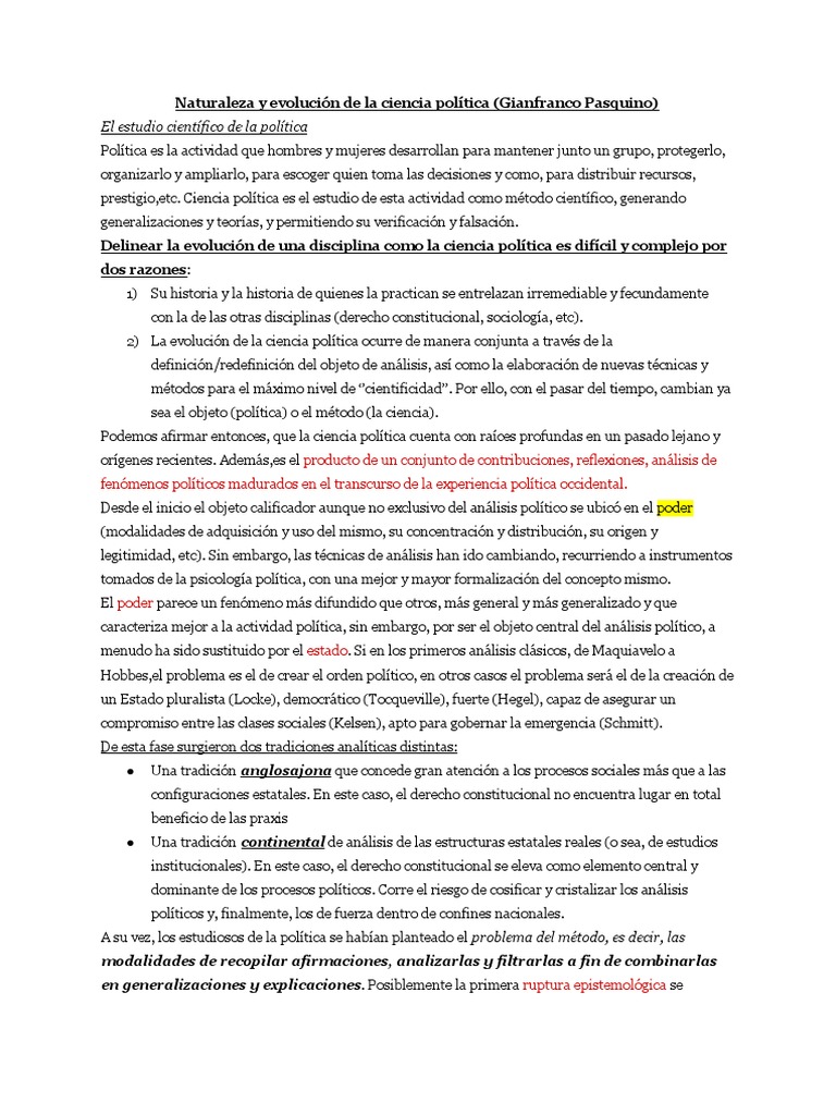Naturaleza y evolución de la ciencia política (Gianfranco Pasquino)