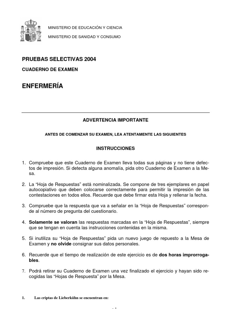 1. Compruebe que este Cuaderno de Examen lleva todas sus páginas y no tiene defec-