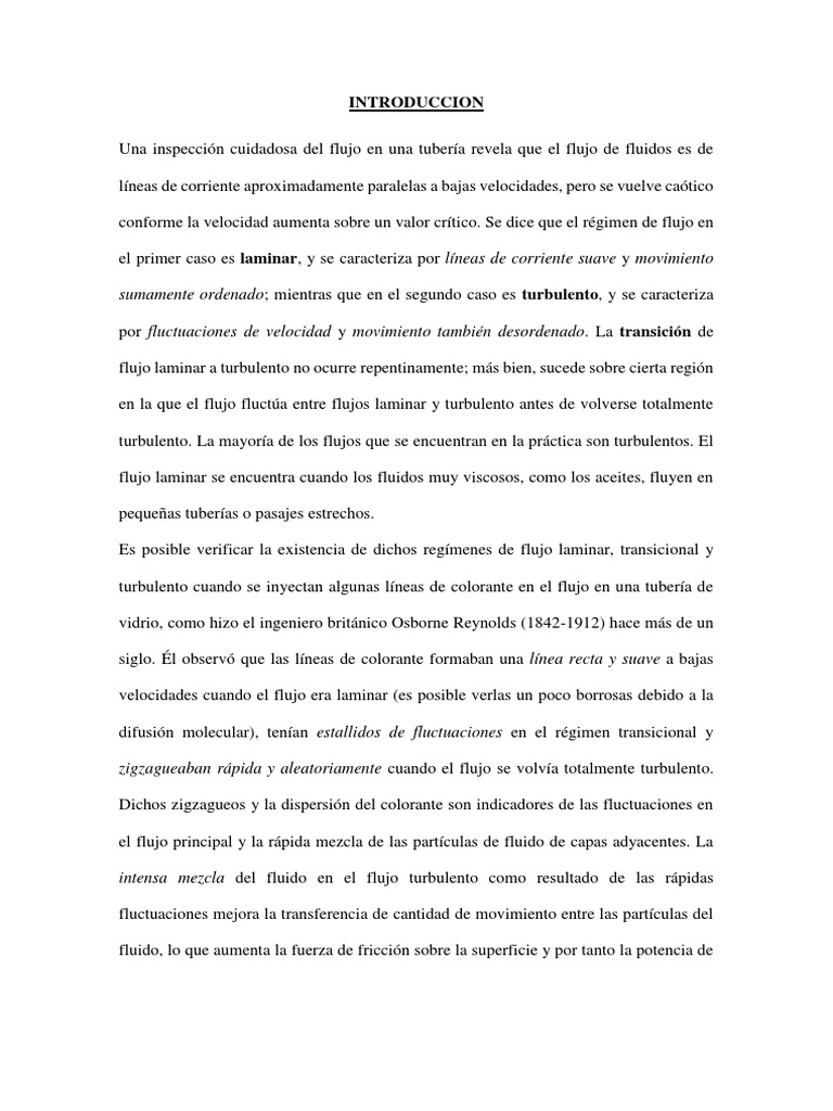 turbulento. Debe pues existir un valor intermedio –concluía Reynolds- que separe