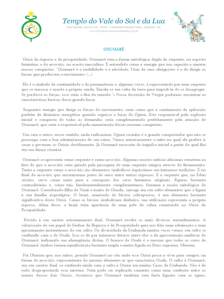 nossas conquistas. “Oxumarê é a mobilidade e a atividade. Uma de suas obrigações é a de dirigir as