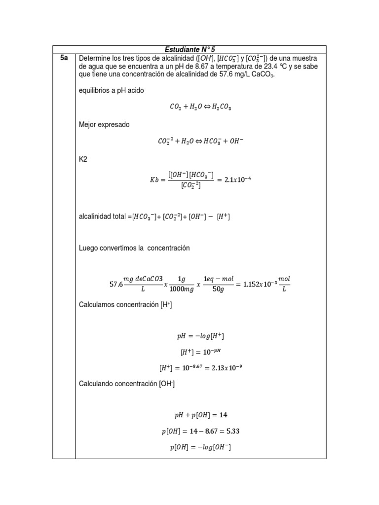 5a Determine los tres tipos de alcalinidad ([OH-], [𝐻𝐶𝑂3− ] y [𝐶𝑂32− ]) de una muestra