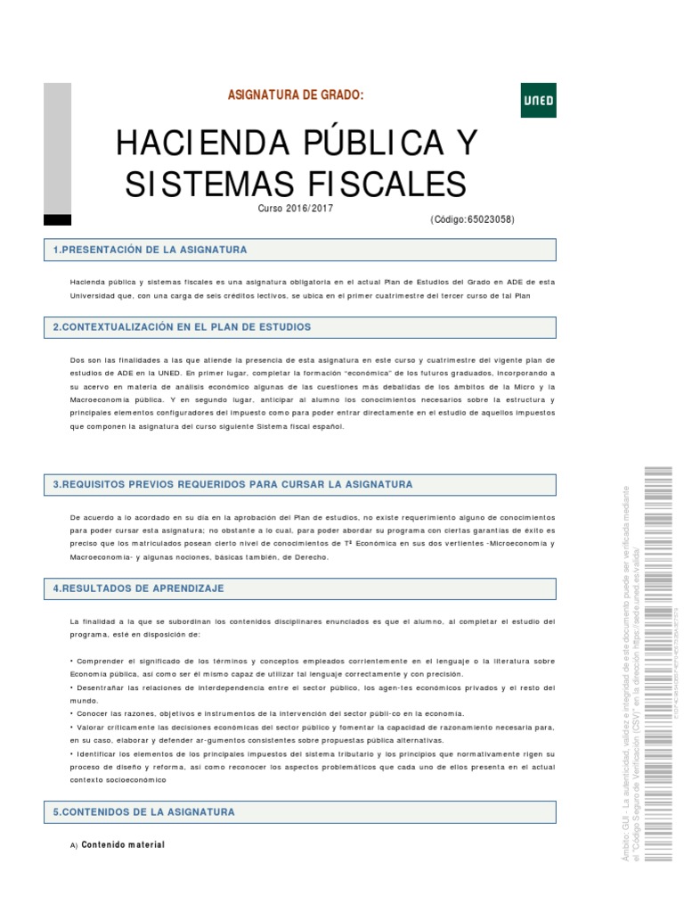 que componen la asignatura del curso siguiente Sistema fiscal español.