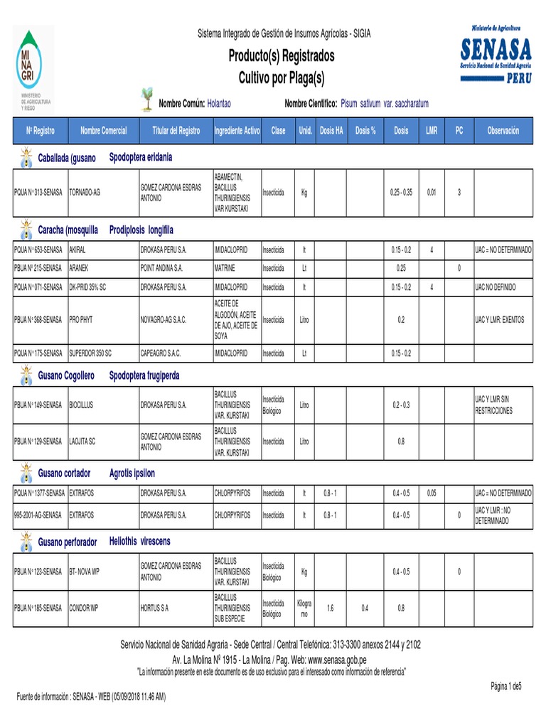 Servicio Nacional de Sanidad Agraria - Sede Central / Central Telefónica: 313-3300 anexos 2144 y 2102