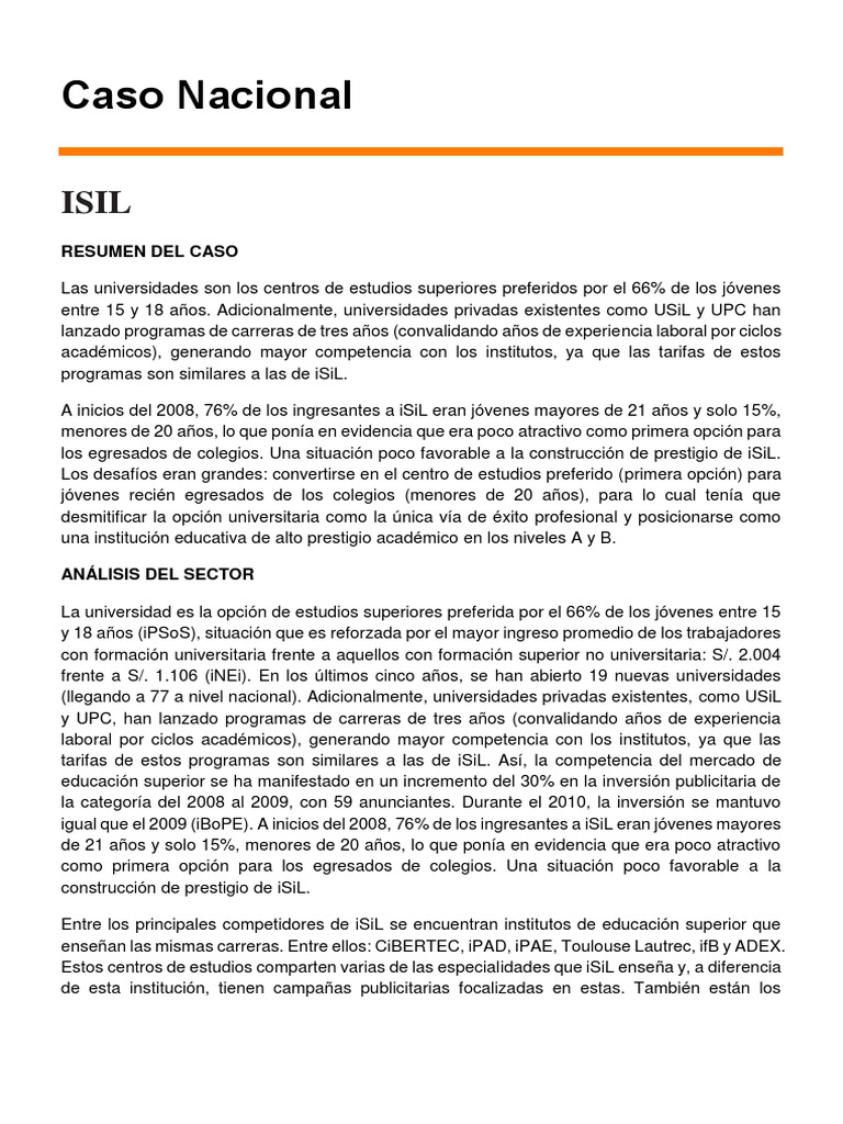 Entre los principales competidores de iSiL se encuentran institutos de educación superior que