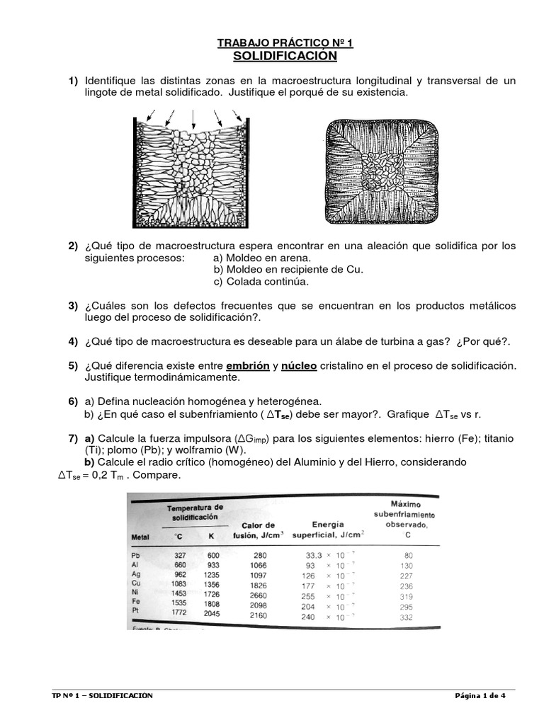 TP Nº 1 – SOLIDIFICACIÓN Página 1 de 4