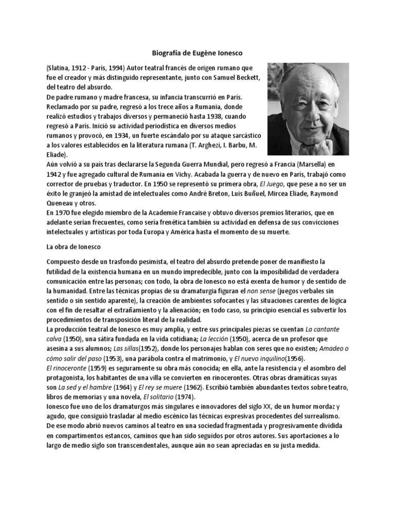 (Slatina, 1912 - París, 1994) Autor teatral francés de origen rumano que