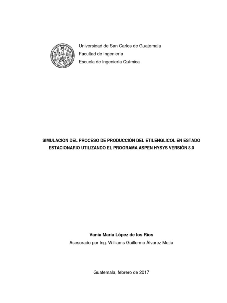 SIMULACIÓN DEL PROCESO DE PRODUCCIÓN DEL ETILENGLICOL EN ESTADO