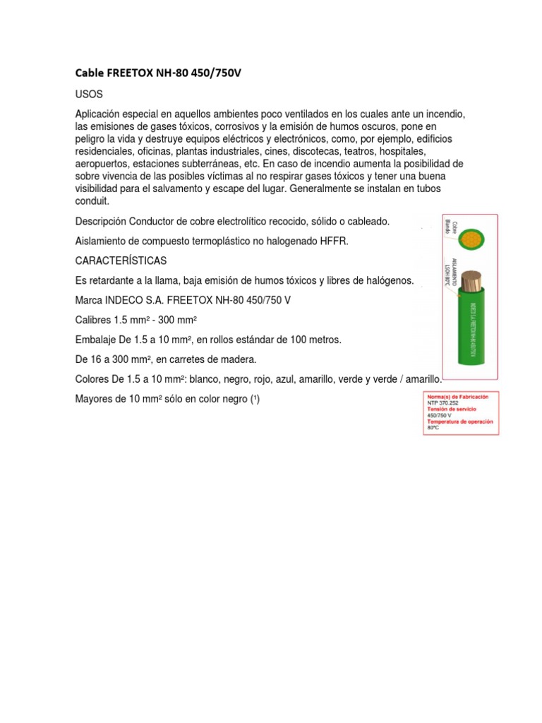 Marca INDECO S.A. FREETOX NH-80 450/750 V