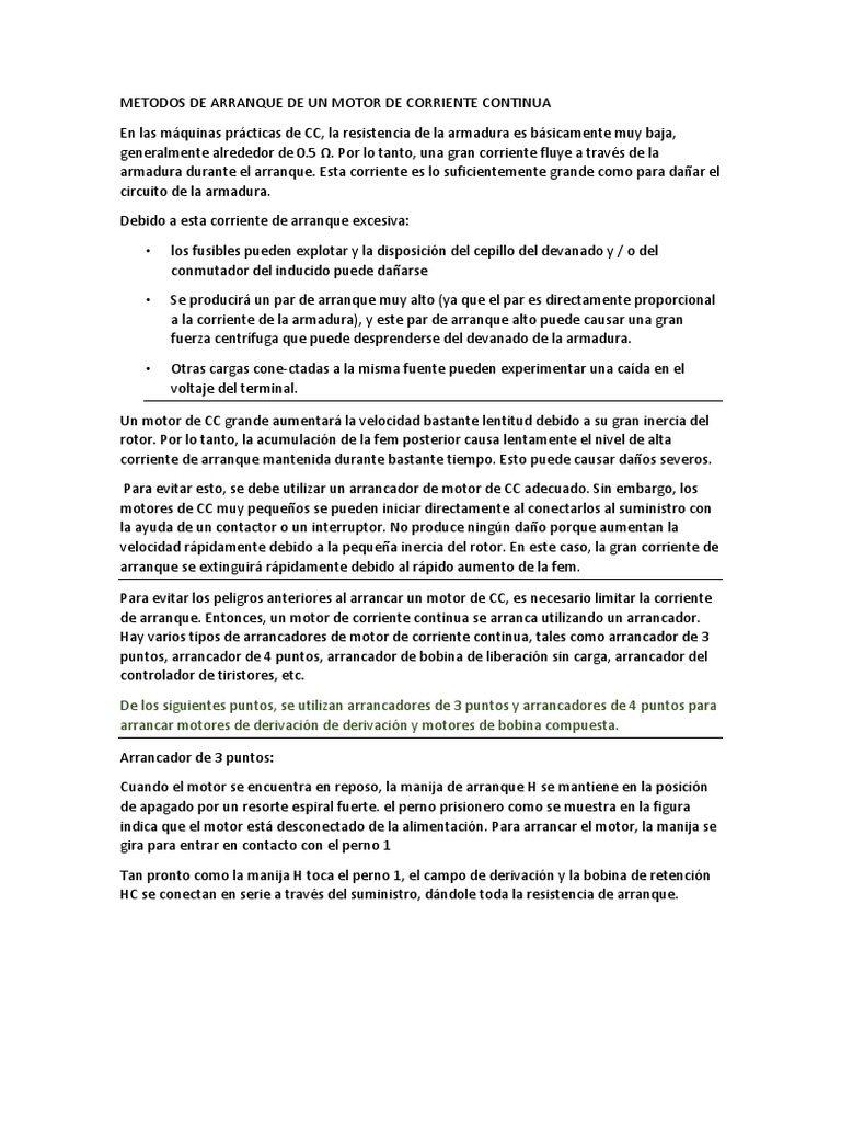 METODOS DE ARRANQUE DE UN MOTOR DE CORRIENTE CONTINUA