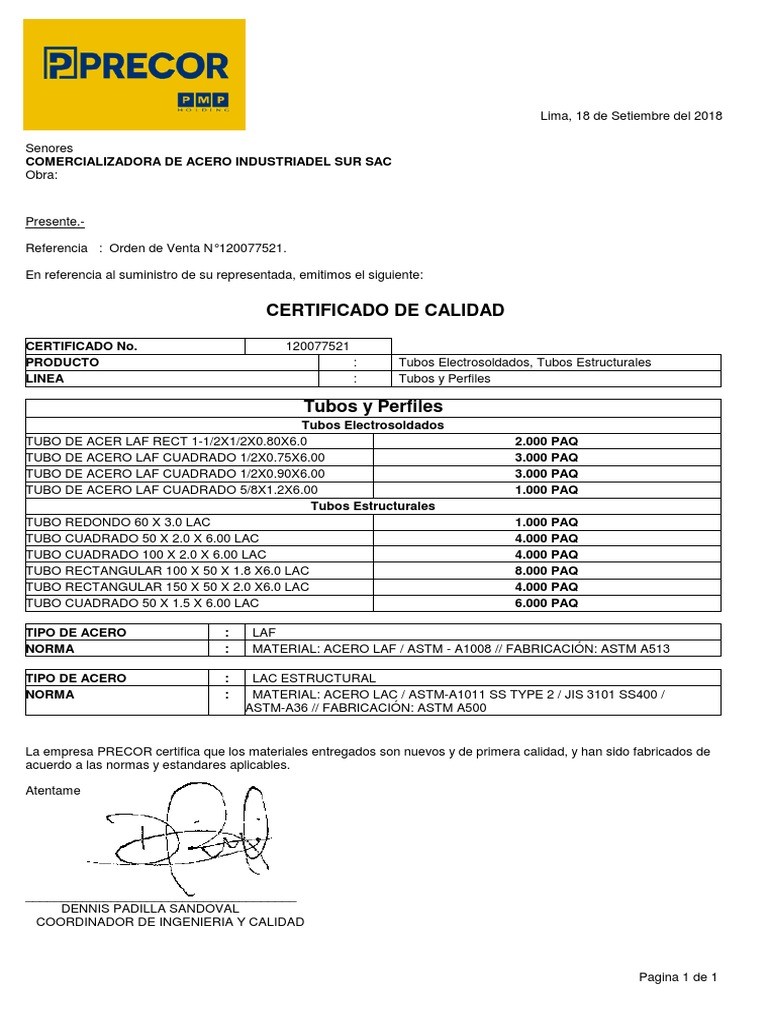 CERTIFICADO DE CALIDAD