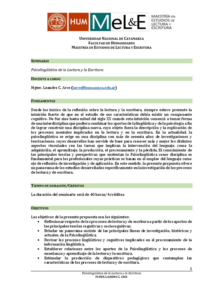 Mgter. Leandro C. Arce (larce@huma.unca.edu.ar)