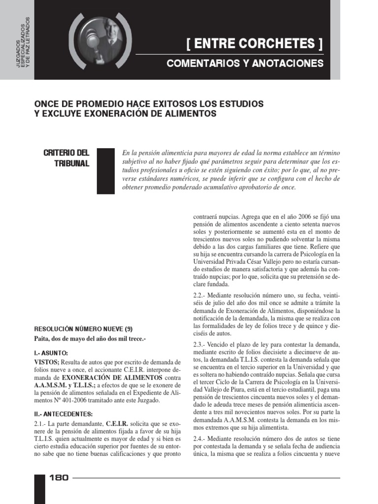 cia, el incumplimiento en el pago de la pensión de ali- cidos sobre el término “éxito” respecto de los estudios