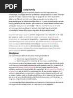 lectura a corta distancia), pero tiene dificultades para leer la tabla optométrica de Snellen (la