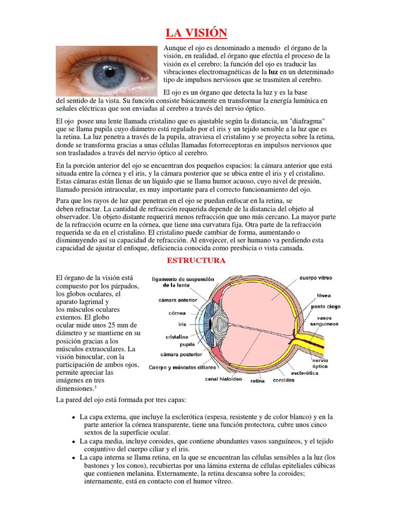 del sentido de la vista. Su función consiste básicamente en transformar la energía lumínica en