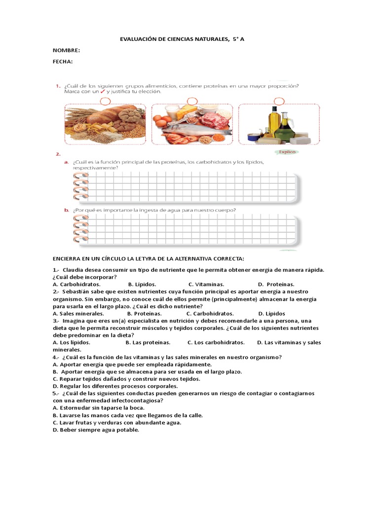 EVALUACIÓN DE CIENCIAS NATURALES, 5° A