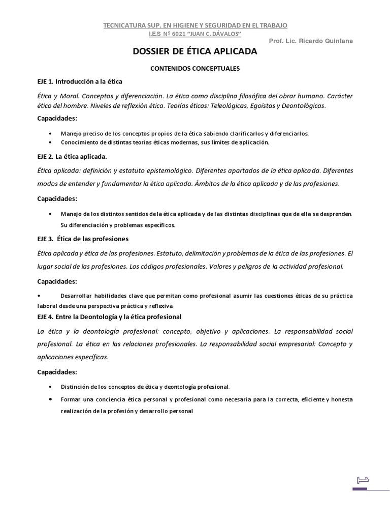 Ética aplicada: definición y estatuto epistemológico. Diferentes apartados de la ética aplica da. Diferentes