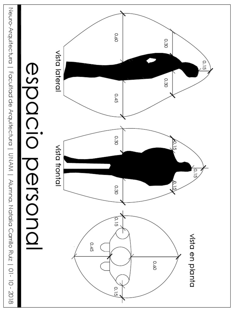 Este documento presenta las vistas en planta, lateral y frontal de un diseño arquitectónico que representa un espacio personal. La vista en planta muestra dimensiones de 0.15, 0.15, 0.30 y 0.30 metros formando un cuadrado con una sección central de 0.60 metros. La vista lateral muestra dimensiones de 0.60, 0.45, 0.30 y 0.15 metros. La vista frontal muestra dimensiones simétricas de 0.15, 0.30, 0.45 y 0.15 metros.