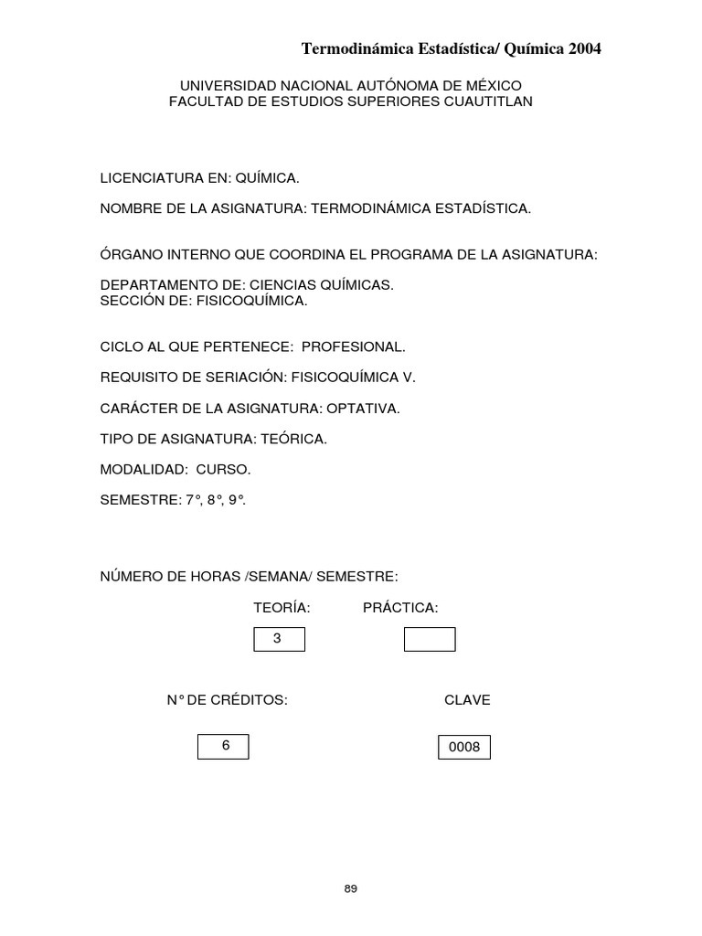 NOMBRE DE LA ASIGNATURA: TERMODINÁMICA ESTADÍSTICA.
