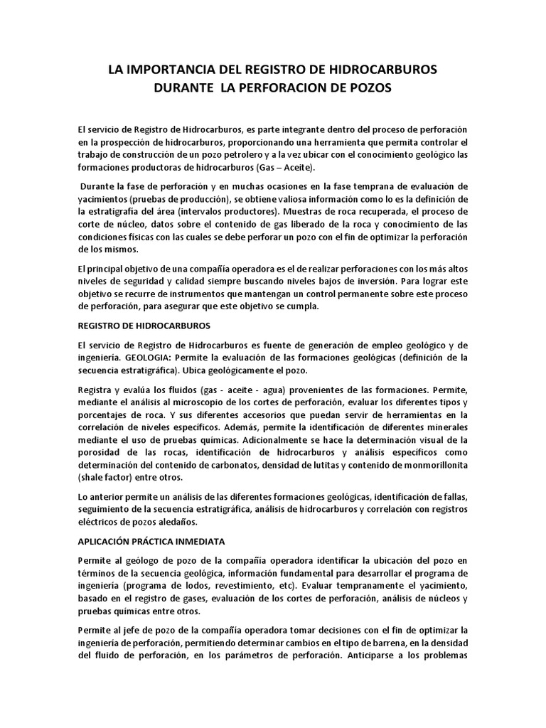 LA IMPORTANCIA DEL REGISTRO DE HIDROCARBUROS