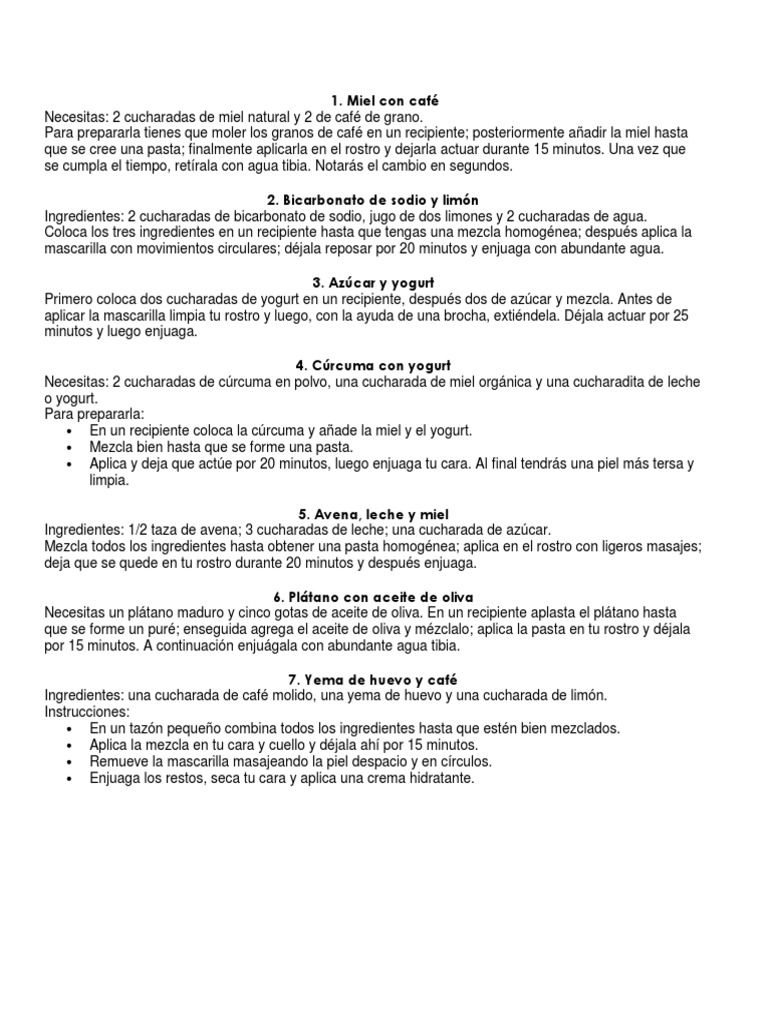 Mezcla todos los ingredientes hasta obtener una pasta homogénea; aplica en el rostro con ligeros masajes;