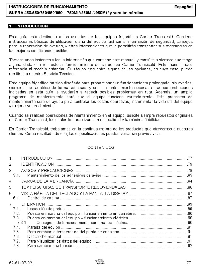 Guía de Uso y Mantenimiento Carrier Transicold