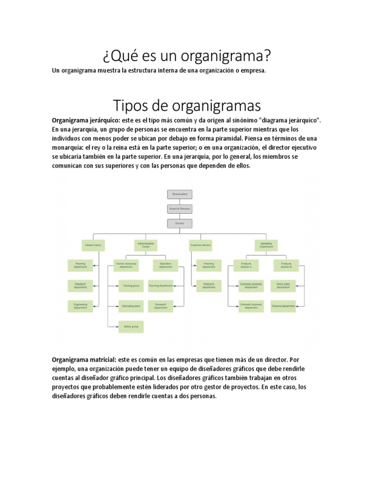 Un organigrama muestra la estructura interna de una organización o empresa.