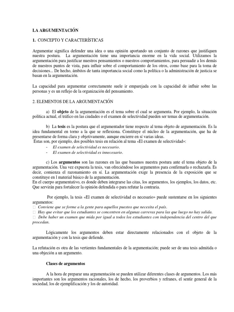 argumentación. Una vez expuesta la tesis, van ofreciéndose los argumentos para confirmarla o rechazarla. Es