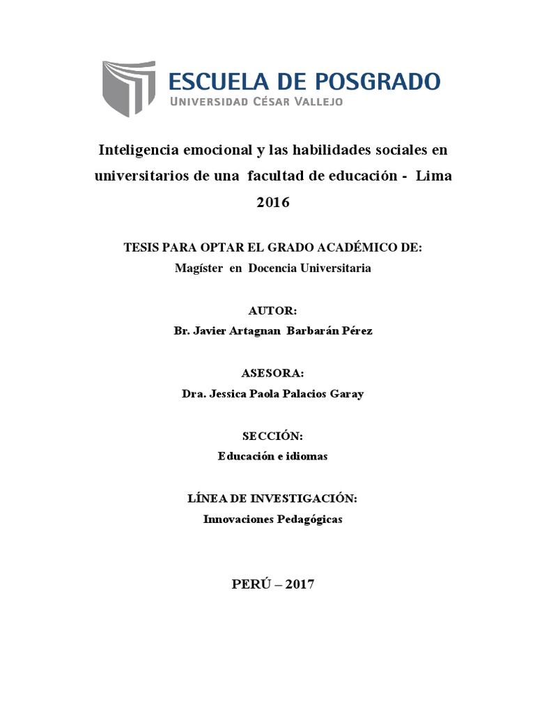titulado “Inteligencia emocional y las habilidades sociales en universitarios de una